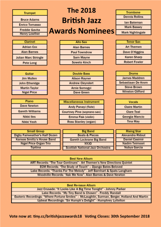 Nomination Parliamentary + British Jazz Awards 2018